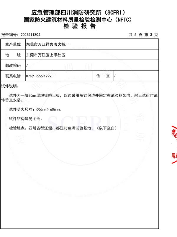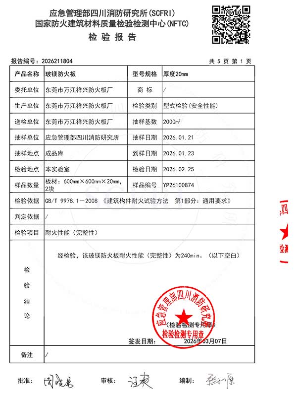 耐火4h-20mm玻鎂板型式檢驗報告